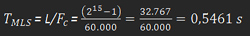 Como ejemplo, consideremos un registro de desplazamiento de 15-bit con una frecuencia de reloj de 60 KHz. El periodo de la señal MLS, TMLS, será: